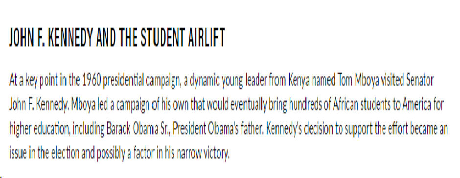 The Tom Mboya 70th in August of 2026 invites the world to Kenya to celebrate American and African Culture. The goal of the celebration is to bring Americans and Africans closer together via acknowleging the history America and Africa whereas Kenya's Tom Mboya and his efforts influenced the culture and history of America. Because of Mboya's efforts there may not have been an American President John F. Kennedy in 1960. Because of the influence to Tom Mboya African/Americans moved from the Republican party of Lincoln to the Democratic party. Clearly because of Tom Mboya there would have never been America's 1st Black President Barack Obama Jr. Without a President Barack Obama Jr. we would not have had a Vice President Joseph R. Biden who later became American President Joseph R. Biden. It is in Kenya where we find the fame Louis Leakey Kenyan British palaeoanthopologist and archaeologist who noted that all humans evolved from Africa. Americans and the world will celebrate our African Heritage. The Safari Homecoming Celebration Act will advance American and African relationships via laws and legislation that makes African education, Travel, Trade, Culture affable. Elmore is asking President Biden to initiate the 1st "African Ambassador Presidential Awards." These awards are given to Americans who have advanced efforts to build positive African and American relationships via Culture. Elmore notes that he was named an African Ambassador by the late Kenya President Daniel Arap Moi. Elmore notes Ryan Coogler director of the Black Panther movie and many of the cast of the Black Panther movie whose efforts paint a positive image of Africa. Elmore notes what better way to build American and African relationships than using culture and noting American and African Cutural Ambassadors.