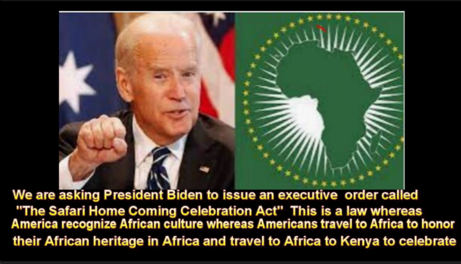 1. The Act’s Purpose: The “Safari Homecoming Celebration Act” aims to make it official and legal for Americans and African Americans to honor their African heritage. It acknowledges the painful history of African Americans who were forcibly taken from Africa as slaves and provides a platform for their formal recognition. 2. Enacting the Act: I urge President Biden to issue an executive order that establishes the “Safari Homecoming Celebration Act.” This legislation would facilitate state receptions in Africa, where African Americans can be formally honored and celebrated.